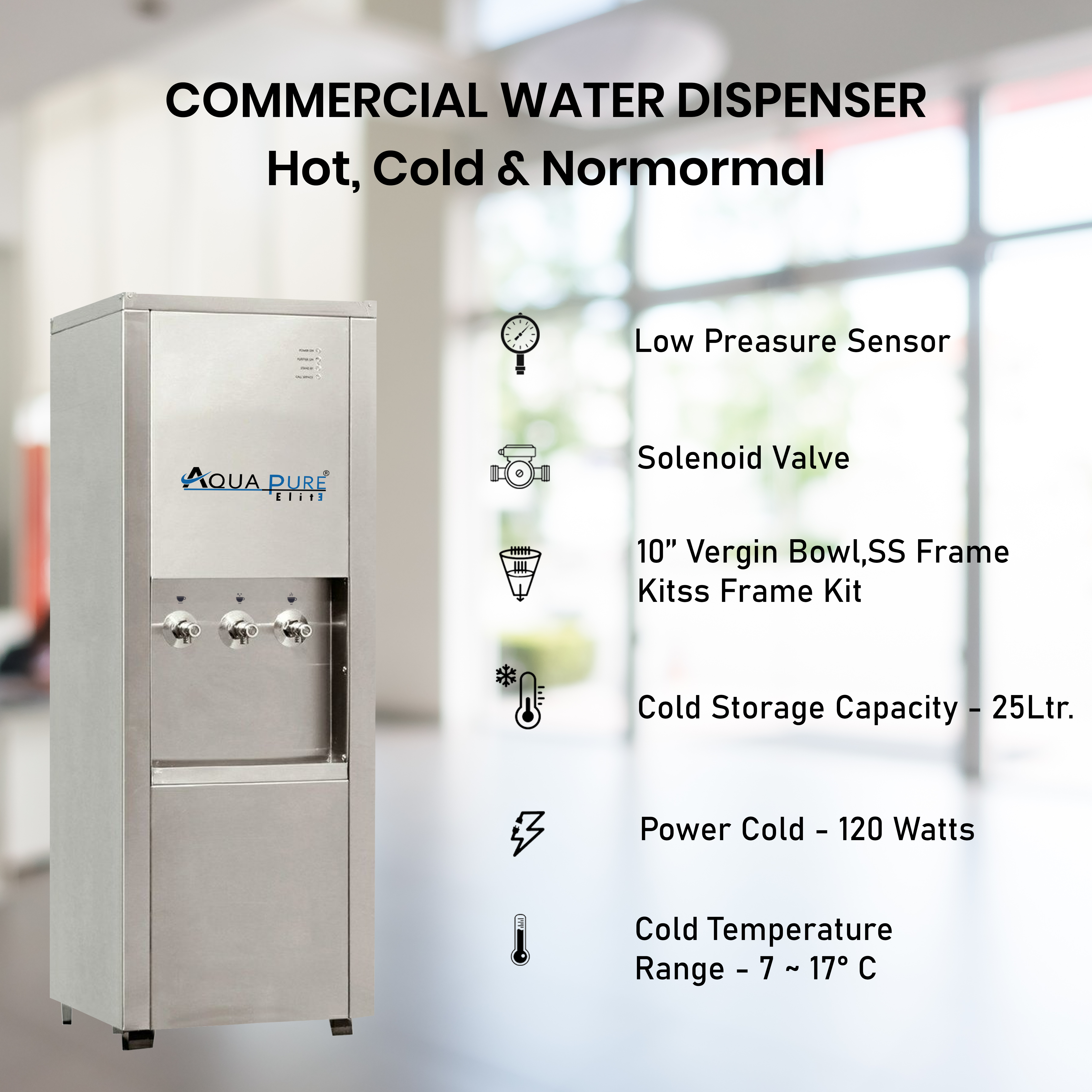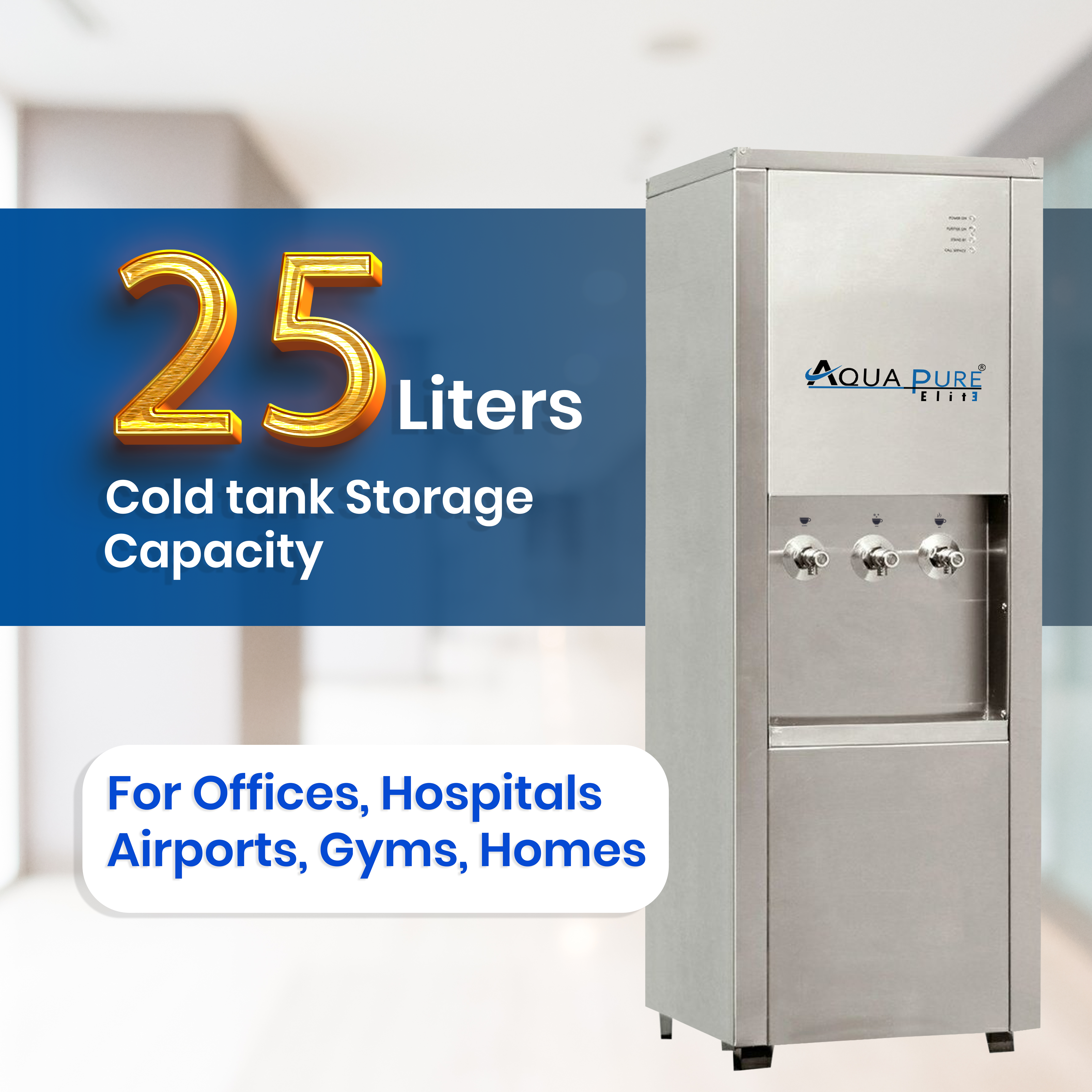 AQUA PURE Elite Industrial Water Dispenser | Hot, Normal & Cold Water | 3 Smart Taps | 8L Cold Storage Tank | High-Capacity Heating & Cooling | BIS Certified | Made in India | Commercial & Industrial Use