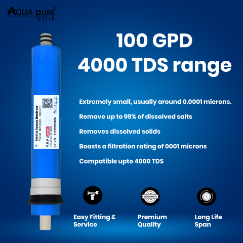 The AQUA PURE ELITE RO Membrane (available in 75 GPD, 80 GPD, and 100 GPD variants) is a dependable choice for households seeking consistent water purification. Designed for domestic RO systems, it effectively removes impurities while maintaining essential minerals for a healthier lifestyle.